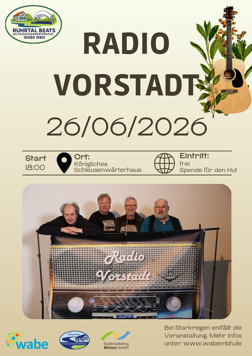 Am 26.06.2026 um 18:00 Uhr heißt es Bühne frei für RADIO VORSTADT! 📻 Die Band bringt feinste deutschsprachige Rock- und Popmusik mit – eingängig, ehrlich und mit Geschichten aus dem echten Leben.