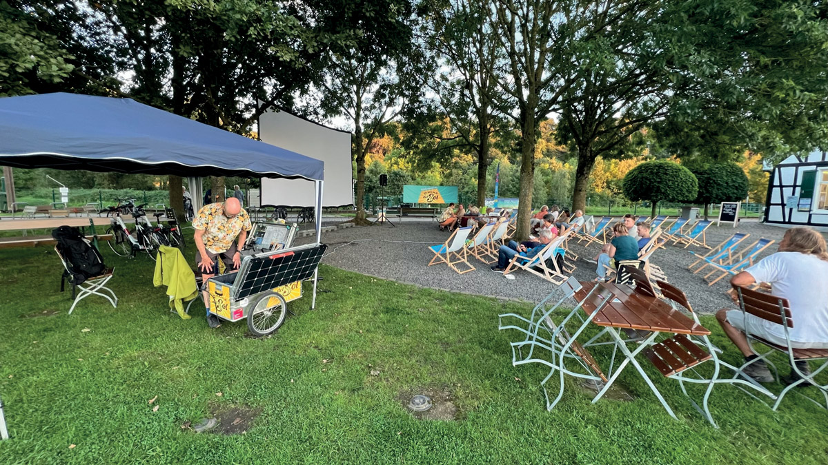 Erlebe filmische Magie inmitten des Ruhrgebiets mit unserem Modul Cinema – einem Open-Air-Kino, das ausschließlich mit Solarenergie betrieben wird. Durch die Anbringung von Solarmodulen auf dem Lastenanhänger fangen wir Sonnenstrahlen ein und wandeln sie in elektrischen Strom um. Sei ein Teil dieser einzigartigen Filmvorführungen und erlebe nachhaltiges Entertainment mit dem Solaren Wanderkino.