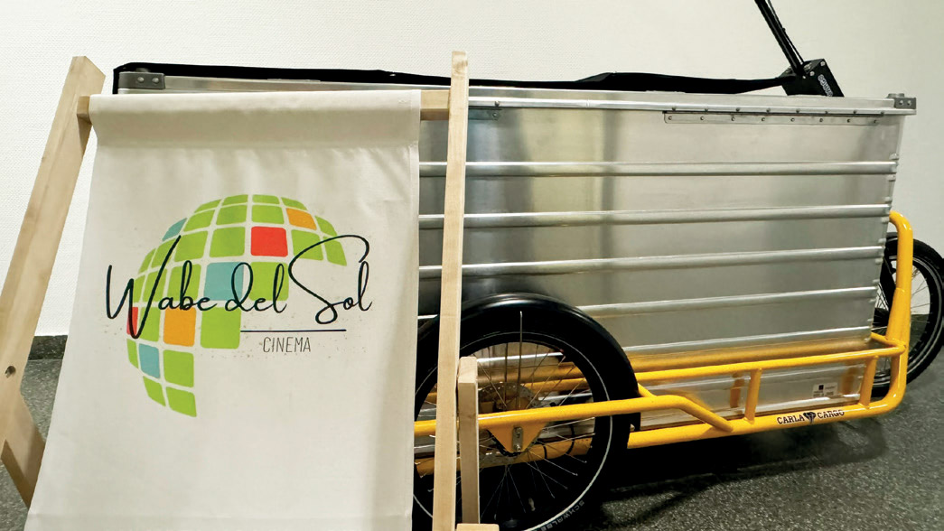 Der Anhänger von Carla Cargo ist vielseitig einsetzbar und kann mit dem Modul Wabe del Sol „Cinema“ oder „Street Music“ bestückt werden.